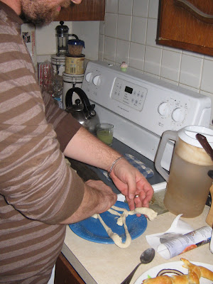 my husband made some awesome pretzels the other night. it was fun to watch him concentrate on getting them the right shape. they were pretty good but the dough just reminded me of biscuits.